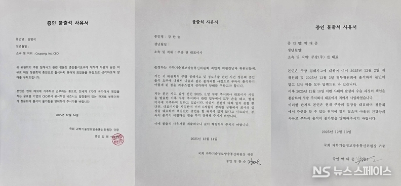 [뉴스스페이스=김희선 기자] 국내 최대 이커머스 기업 쿠팡에서 발생한 3370만명 개인정보 유출 사태가 역대 최대 규모로 확산된 가운데, 창업자 김범석 쿠팡Inc 의장이 12월 17일 예정된 국회 청문회 출석을 거부하며 논란이 가중되고 있다.