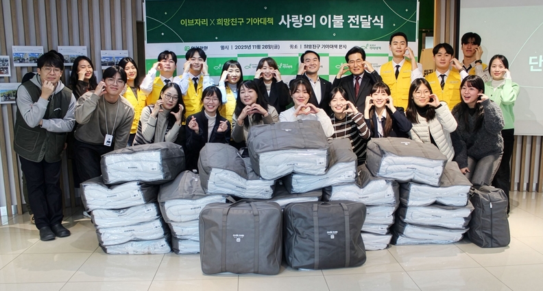[뉴스스페이스=김희선 기자] 토털슬립케어 브랜드 ㈜이브자리가 취약계층을 위한 ‘2025 사랑의 이불 전달식’을 진행하고 올해 연말까지 1200여 채(약 1억8000만원 상당)의 침구를 기부한다고 밝혔다.