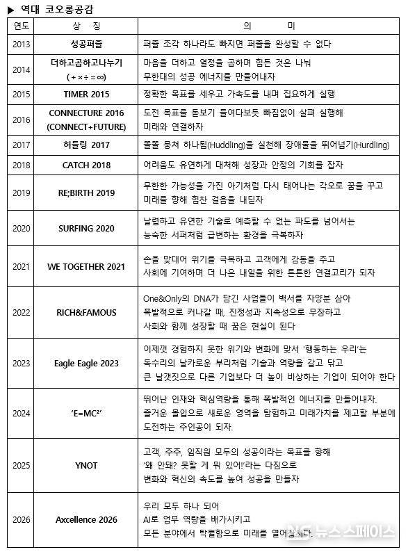 코오롱그룹은 이날 신년사를 통해 올해를 관통하는 경영메시지를 뜻하는 ‘코오롱공감’으로 AI와 Excellence(탁월함)를 결합한 조어 ‘AXcellence 2026’을 선정, 발표했다.