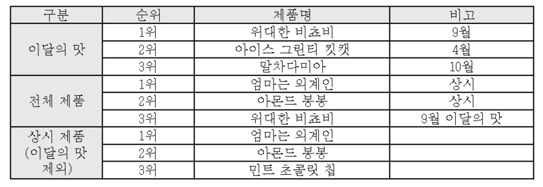 ‘엄마는 외계인’과 ‘아몬드 봉봉’이라는 절대 강자가 여전히 1∙2위를 지킨 가운데, 9월 ‘이달의 맛’ 신제품으로 출시된 ‘위대한 비쵸비’가 Top 3에 오르는 이례적인 변화가 나타났다. ‘이달의 맛’은 매월 새로운 신제품을 출시해 고객에게 색다른 즐거움을 제안하는 배스킨라빈스의 대표적인 브랜드 전략으로 판매 3위권 진입은 처음이다. 이번 결과는 ‘이달의 맛’ 전략이 실험적 메뉴를 넘어 실질적인 히트 제조기로 진화했음을 보여준다.
