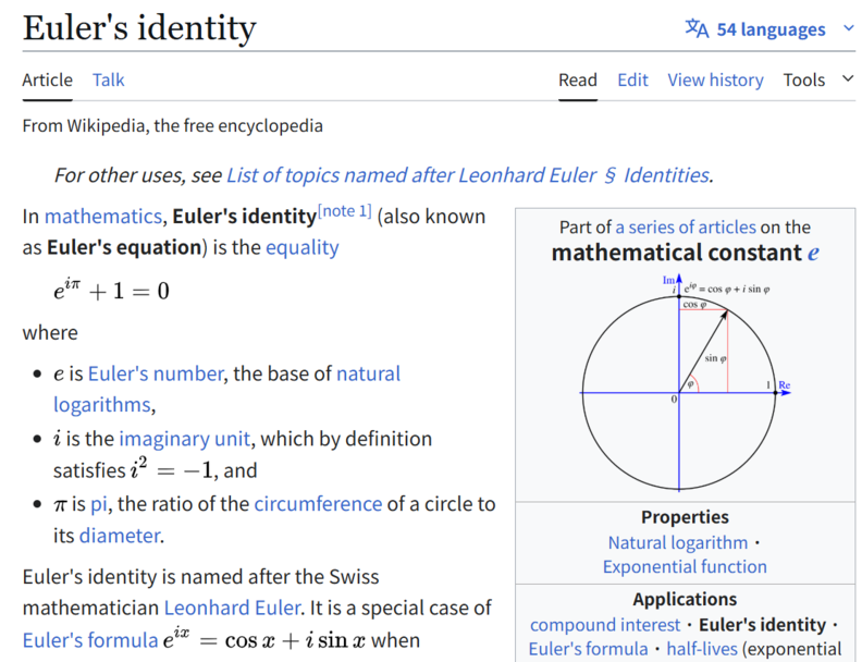 이들이 오일러 항등식에서 완벽하게 연결되기 때문이다. 이 단순한 식 하나가 덧셈의 정체(0), 곱셈의 정체(1), 원의 신비(π), 자연 성장의 본질(e)을 한데 모아 수학의 근본을 드러낸다. 이 4개를 인류가 왜 가장 위대하다고 꼽았는지 숫자의 마법 같은 힘을 풀어보자.