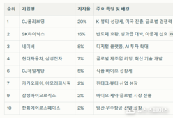 51위~60위는 대방건설, 태영, 삼천리, KG, 에코프로, HL, 동원, 아모레퍼시픽, 태광, 크래프톤이었다.