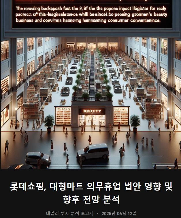 법안 추진 소식에 이마트와 롯데쇼핑 주가는 각각 8~9% 급락했다. 투자심리 위축과 업계 불확실성 증대가 확인됐다.