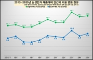 [뉴스스페이스=최동현 기자] 국내 매출 1위 기업인 삼성전자의 지난해 직원 1인당 연간 평균 보수(연봉)가 1억5000만원을 넘어설 것이라는 전망이 나왔다. 별도 재무제표 기준으로 매출 대비 직원 인건비 비중은 최근 1년 새 0.5%포인트 이상 상승해 10%에 근접했는데, 이는 2015년 이후 두 번째로 높은 수준으로 나타났다. 또 삼성전자 국민연금 가입자 수는 최근 1년 사이 600명 정도 줄어든 것으로 조사됐다. 특히 월별로 보면 지난해 3월에는 1500명 넘게 국민연금 자격을 취득한 반면, 12월에는 1000명 이상 자격을 상실한 것으로 파악됐다. 기업분석전문 한국CXO연구소는 12일 제출된 감사보고서를 토대로 ‘2025년 삼성전자 직원 평균 보수 분석 및 인건비 변동, 월별 국민연금 가입자 현황’ 결과를 19일 발표했다. 평균 연봉 산정 대상은 등기임원을 제외한 미등기임원과 부장급 이하 일반 직원이며, 고용 인원은 국민연금 가입자 수를 기준으로 분석했다. 이번 조사에서는 국민연금 취득자와 상실자로 구분해 월별 변동을 조사했다. 연구소 측은 국민연금 자격 취득자 중에는 신규 채용뿐 아니라 복직이나 기타 사유로 재입사한 경우도 포함될 수 있고, 상실자 역
