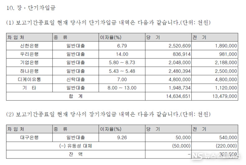 특수관계자 거래 내역도 눈여겨봐야 할 대목이다. 당기 특수관계자와의 주요 거래에서 (주)디케이유통에 지급한 이자비용이 3억 6,209만원에 달했다. 전기(3억 3,484만원)에 이어 2년 연속 이 회사로부터 48억원의 신탁대출(이자율 7.00%)을 빌려 쓴 대가였다.