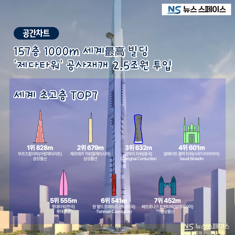 [카드뉴스] 세계 초고층빌딩 TOP7…157층 1000m '제다타워' 1위 '눈앞'