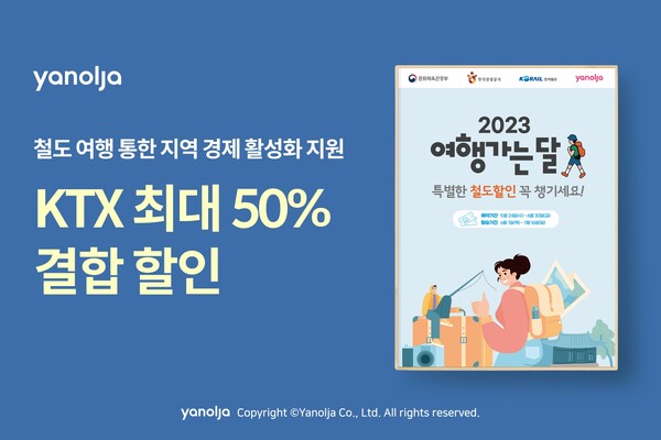 야놀자는 한국철도공사와 함께 여행을 통한 일상 및 지역경제 회복에 기여하고자 문화체육관광부와 한국관광공사가 주최하는 ‘2023 여행가는 달’ 캠페인에 동참한다. 6월까지 KTX와 국내 숙소를 함께 구매 시 최대 50% 결합 할인 혜택을 선보인다. 6월 1일(목)부터 7월 16일(일)까지 탑승하는 승차권을 대상으로 한다.