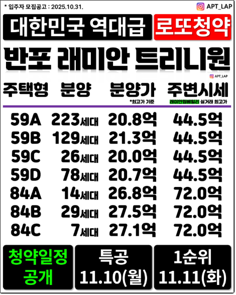 국내 부동산 시장에서 역대급 최대어로 평가받는 ‘반포 래미안 트리니원’이 2025년 11월 10일 특별공급을 시작으로 본격적인 청약 일정에 돌입했다.