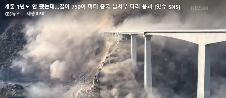 11일 오후, 산사태가 발생하면서 교량 접근로와 도로 기반이 함께 무너졌고, 현장 영상에는 다리 상판과 잔해가 계곡 아래로 추락하며 흙먼지가 치솟는 장면이 담겼다. 중국 당국은 “산사태가 다리 붕괴의 직접 원인”이라고 밝혔으나, 일부 외신과 누리꾼들은 “지질이 불안정한 지역에서 무리한 개발과 느슨한 감독 체계가 빚은 구조적 문제”라고 지적하고 있다.
