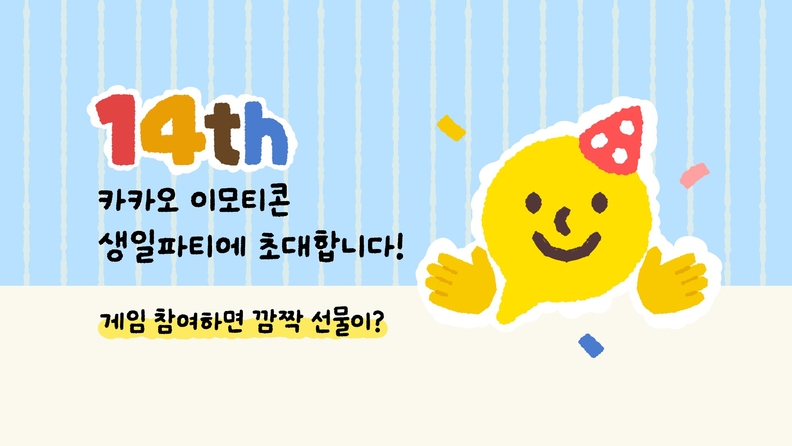 카카오는 이모티콘 출시 14주년을 맞아 생일 파티 콘셉트의 이벤트 페이지를 열고 다양한 참여형 이벤트를 진행한다.