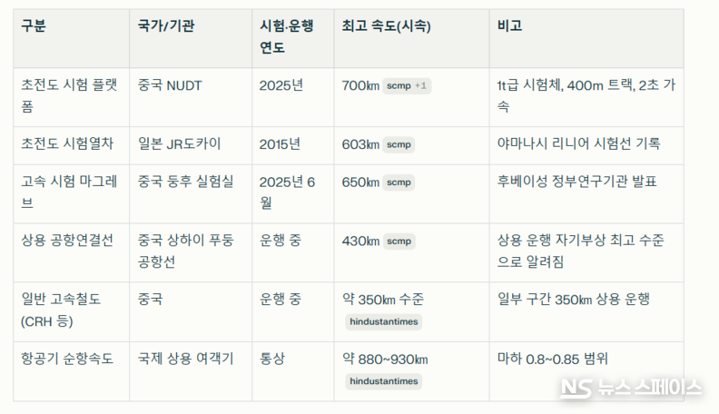 2015년 일본 JR도카이의 시속 603㎞ 시험 기록을 10년 만에 큰 폭으로 갈아치운 이번 실험은, 하이퍼루프급 진공튜브 교통과 항공우주 전자기 발사 시스템 구상에 ‘속도 한계’를 다시 쓰는 계기로 평가된다.