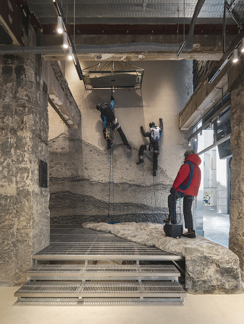 2층에는 브랜드 정체성이 집약된 신발 라인을 비롯해 아웃도어의 기능을 일상적 디자인에 접목한 ‘에브리데이’, 낚시 활동에 특화된 ‘웨더몬스터’, 자연 지형에서의 러닝 퍼포먼스를 고려한 ‘트레일 러닝’ 등 다양한 제품군을 만나볼 수 있다.