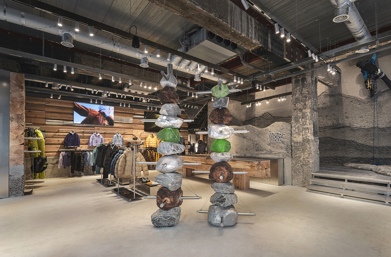 특히 건축 설계 단계부터 코오롱스포츠의 지향점인 ‘자연과의 연결’이라는 브랜드 철학을 공간에 구현하는데 초점을 맞췄다. 자연을 정복하거나 극복의 대상으로 보지 않고 인간과 공존하는 존재로 바라보는 브랜드의 관점을 바탕으로, 자연물의 원형과 인공적인 구조물을 분리하지 않고 조화롭게 결합하는 방식으로 공간을 구성했으며, 이러한 설계는 매장 전반의 동선에 적용됐다.