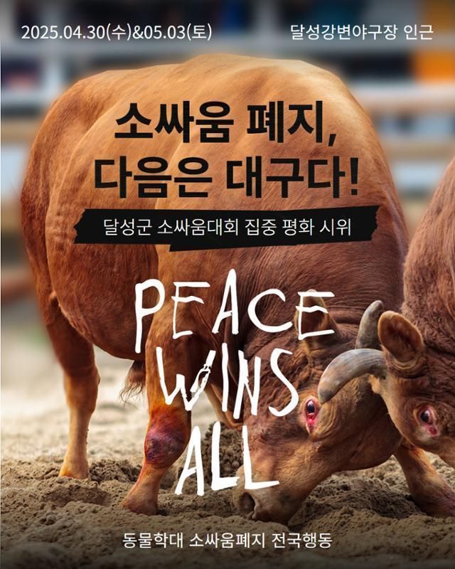 그러나 여론은 급변 중이다. 2024년 소싸움 금지 국민청원이 5만 2,757명 동의를 얻어 국회 농림축산식품해양수산위에 회부됐으며, 지난해 여론조사에서 70.1%가 관람 의사 없음, 57%가 공공 예산 반대 의견을 보였다.