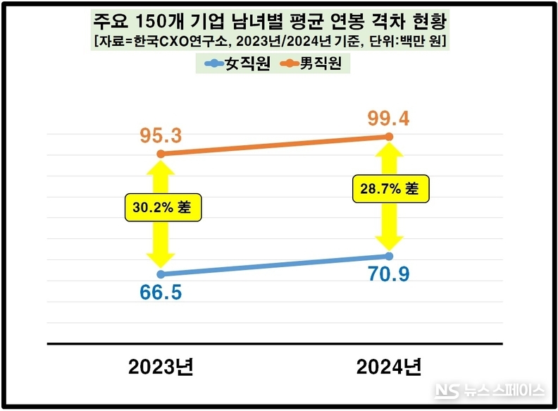 ◆ 150개 대기업, 女직원 평균 보수 7090만원…男직원 평균 9940만원 대비 71.3% 수준
