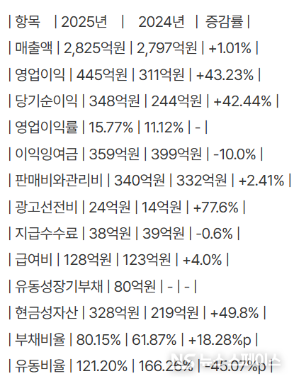 수익성 개선 이면에는 비용 효율화와 더불어 공격적인 마케팅이 자리하고 있다. 판매비와 관리비는 340억원으로 전년(332억원) 대비 2.41% 증가했다. 세부적으로 급여비는 128억원으로 전년(123억원) 대비 4.0% 늘었으며, 지급수수료는 38억원으로 전년(39억원) 대비 소폭(-0.6%) 감소했다.