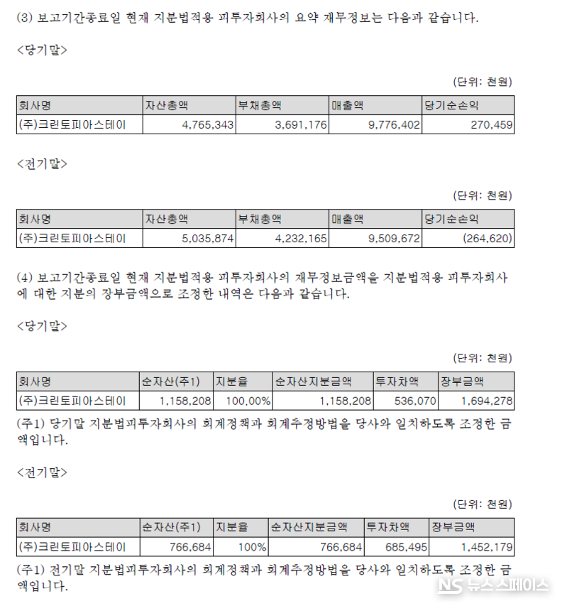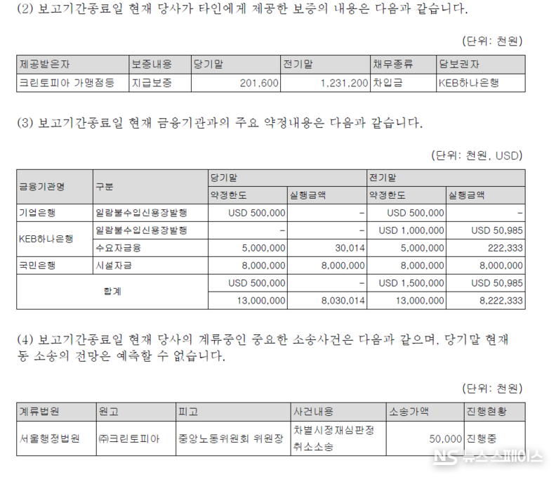이에 대해 크린토피아측은 "부채비율이 증가한 것은 사업 성장에 따른 일시적 미지급법인세 증가와 주주환원정책의 일환인 배당금 부채 계상 등 회계적 영향이 반영된 결과"라며 "실질적 재무 부담 가중이 아니며, 회사는 안정적인 영업현금흐름과 재무관리 기조를 바탕으로 재무건전성을 지속적으로 관리하고 있다"고 해명했다.