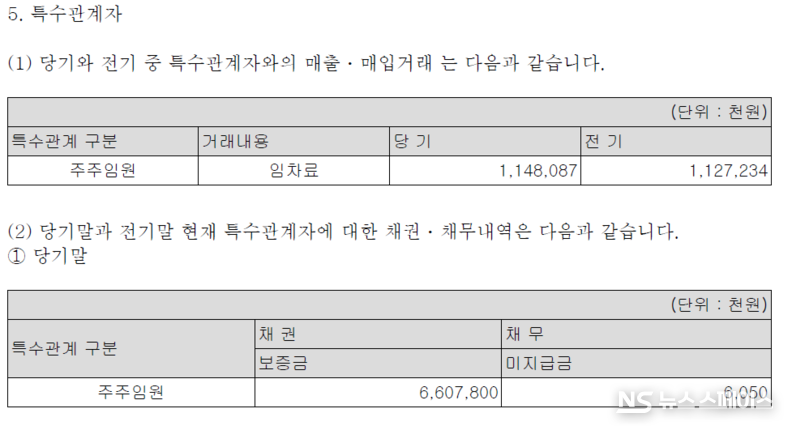 오너 일가는 배당금 외에도 임차료 명목으로 회사 자금을 수령하고 있다. 특수관계자(주주임원)와의 거래 내역을 보면, 피죤은 당기 중 주주임원에게 임차료로 11억4,800만원을 지급했다. 전년(11억2,700만원)보다 소폭 늘어난 수치다. 또한 주주임원에게 지급한 보증금 명목으로 66억700만원이 잡혀 있다.