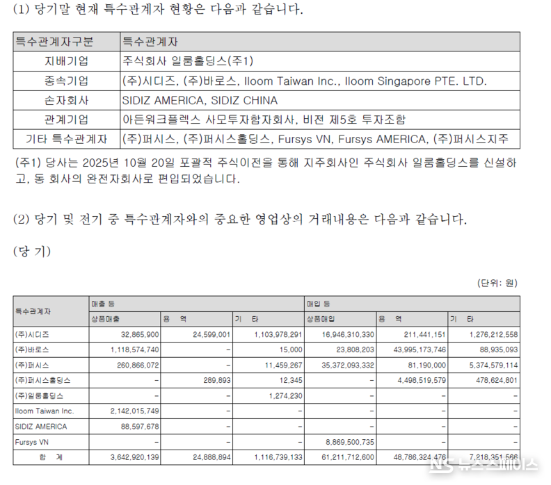 특히 해외 종속법인인 대만 법인이 완전 자본잠식에 빠져 수십억 원대의 대손상각비가 발생했음에도, 특수관계자와의 내부거래 비중은 여전히 압도적인 수준을 유지하고 있어 경영 리스크 관리에 적신호가 켜졌다는 지적이 나온다.