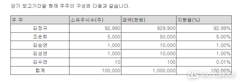 특수관계자 거래 잔액 현황을 보면, 김정규에 대한 임차보증금 잔액이 139억 7000만원이고 임대보증금이 65억 4000만원이다. 이는 회사가 오너 소유 부동산을 임차해 영업 중이라는 의미다.
