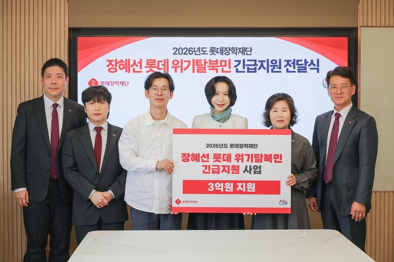 [뉴스스페이스=이종화 기자] 롯데장학재단(이사장 장혜선)은 4월 15일 서울 중구에 위치한 재단 회의실에서 ‘2026년 장혜선 롯데 위기 탈북민 긴급지원 사업’ 전달식을 열고, 지원금 3억원을 전달했다고 밝혔다.
