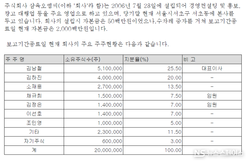 그외 개별 질의사항에 대해서는 365mc측은 "현재 사업 전략 및 내부 운영 정보와 관련된 부분이 포함되어 있어 상세한 공개가 어렵다"면서 "관련 내용은 향후 공시 및 공식 자료를 통해 지속적으로 투명하게 안내드릴 예정이다"고 밝혔다.