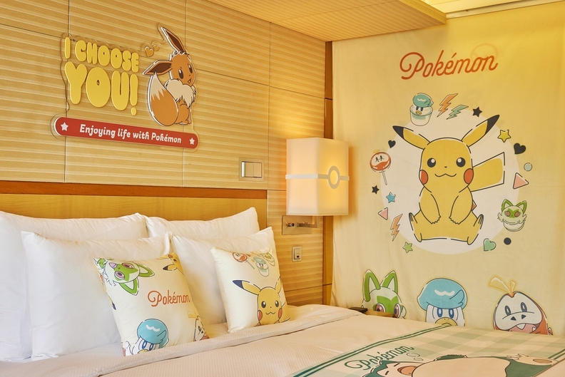 포켓몬이 가득한 벽지와 쿠션, 전등의 인테리어 소품은 물론 포켓몬 자수가 놓아진 배스로브 등 객실 내부 곳곳에 숨겨진 포켓몬 요소들을 찾아보는 것도 또 다른 재미를 선사한다.