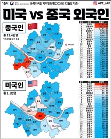 [뉴스스페이스=김혜주 기자] 서울 외국인 부동산 시장이 국적에 따라 명확히 갈리고 있다. 2024년 12월 기준, 중국인과 미국인이 보유한 서울 아파트 수에서 나타난 양극화가 두드러진다.