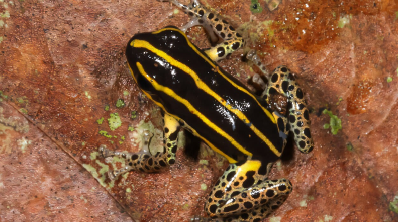 이 개구리는 라니토메야 속에서 가장 작은 종으로, 손톱 크기와 비슷하며 밝은 노란색 줄무늬와 점박이 배, 검은 목 밴드가 특징이다. 발견 소식은 페루 국립자연보호구역관리청(Sernanp)이 2025년 10월 6일(현지시간) 공식 발표를 통해 공개했다.