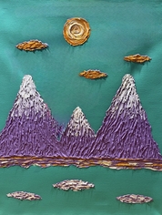 [뉴스스페이스=이종화 기자] 이 미술 작품은 두꺼운 물감층(임파스토)으로 구축된 보랏빛 산맥과 에메랄드색 호수, 나선형의 태양과 구름이 등장하는 추상적 산수화다. 표면이 거의 부조(레리프)에 가깝게 솟아 있어 평면 회화라기보다 소규모 설치미술처럼 빛과 그림자를 끌어들이며, 보는 위치에 따라 산의 주름과 물결이 달리 읽힌다. 전통적인 원근법 대신 색 대비와 질감의 밀도로 공간을 직조했다는 점에서, 이 작품은 자연 풍경을 사실적으로 재현하기보다 ‘감각 데이터’로 재구성한 포스트-디지털 풍경으로 해석할 수 있다. 두꺼운 붓질의 정치학 – 임파스토가 말하는 것 이 그림에서 가장 먼저 눈에 들어오는 것은 산, 구름, 태양을 형성하는 과도하다 싶을 만큼 두꺼운 물감층이다. 미술 이론에서 임파스토(impasto)는 물감을 반죽처럼 두껍게 올려 붓 자국과 팔레트나이프 자국을 숨기지 않고 드러내는 기법으로, 표면의 요철이 실제 3차원 그림자를 만들며 회화의 물성(物性)을 강조하는 전략으로 알려져 있다. 19세기 이후 빈센트 반 고흐, 렘브란트 등이 감정의 격렬함을 표현하기 위해 이 기법을 적극 사용했고, 최근에는 아크릴 물감과 젤·모델링페이스트의 발달로 보다 가볍고 빠르게