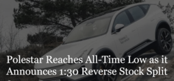 [뉴스스페이스=조일섭 기자] 스웨덴 전기차 제조업체 폴스타(Polestar)는 미국예탁주식(ADS) 30주를 1주로 통합하는 역주식 분할을 단행한다고 11월 14일(현지시간) 발표했다. 발표 직후 주가는 12.2% 급락했으며, 2022년 상장 이후 주가는 95% 이상 하락한 상태다. 이는 나스닥 상장 유지 요건인 최소 주가 1달러 이상을 달성해 상장폐지를 피하기 위한 조치다. Reuters, MarketScreener, The Driven, Electric Vehicles에 따르면, 이번 역주식 분할은 기존 주식 30주를 1주로 합쳐 주가를 기계적으로 약 30배 높이는 효과가 있지만, 회사의 전체 시가총액과 투자자 지분 비율에는 변동이 없다. 폴스타의 클래스 A ADS는 기존대로 PSNY 기호로 나스닥에서 거래된다. 이번 조치는 지난 10월 나스닥으로부터 10거래일 연속 주가가 1달러 미만으로 유지된 데 따른 공식 상장폐지 통보(디리스팅 워닝)를 받은 데 따른 후속 조치다. 폴스타는 2026년 4월 29일까지 주가를 1달러 이상으로 회복하지 못하면 상장폐지가 이뤄질 수 있으며, 이후 추가로 180일의 유예기간이 부여될 수 있다. 그러나 최근 2년간 주가가