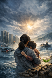 지난 2009년, CJ그룹 계열사 CJ엔터테인먼트(현 CJ E&M 영화사업부문)의 투자·배급 작품으로 첫 1,000만 관객을 기록한 영화 <해운대>. 당시 홍보팀 과장이었던 제게 이 작품은 지금도 생생한 기억으로 남아 있습니다. 개봉 전부터 “부산 해운대에 쓰나미가 온다는 설정이 말이 되느냐”, “CG로 구현했을 텐데 개연성이 떨어진다”, “시대착오적인 영화 아니냐”는 비판과 구설이 끊이지 않았습니다. 그럼에도 결과는 명확했습니다. <해운대>는 한국형 재난 영화의 가능성을 입증하며 흥행에 성공한 상업영화로 기록됐습니다. 그런데 마침 넷플릭스에 <대홍수>라는 신작이 올라왔습니다. 금요일 퇴근 후, 잔잔한 수면 위에 낚싯대를 드리웠는데 뜻밖의 월척을 낚은 듯한 기분이 들었습니다. 데뷔 때부터 인상 깊게 지켜봐 온 김다미 배우, 최근 드라마에서 존재감을 드러낸 아역 배우, 그리고 ‘대홍수’라는 대규모 재난을 전면에 내세운 설정까지. 자연스럽게 <해운대>가 떠오를 수밖에 없었습니다. (약간의 스포일러를 감안하자면) 이 영화는 인류 멸망의 위기를 다룬 전형적인 신파 구조로 출발합니다. 그러나 이야기를 따라가다 보면,